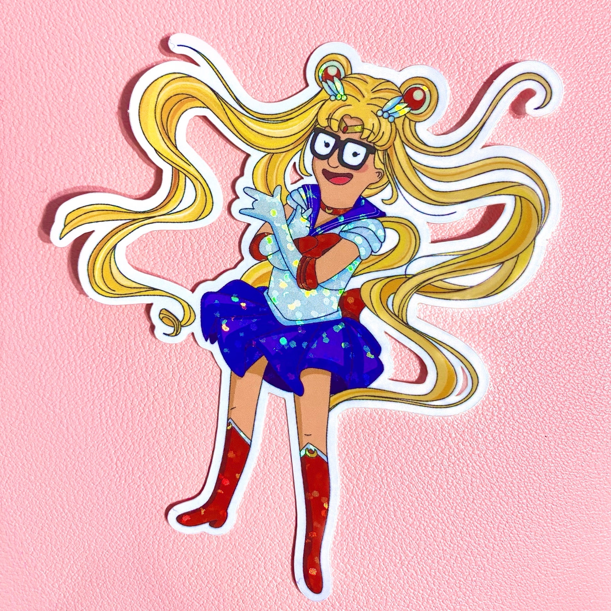 2.8"x3.5" Glitter sticker of Tina Belcher from Bob's Burgers as Usagi from Sailor moon!🌙✨💖