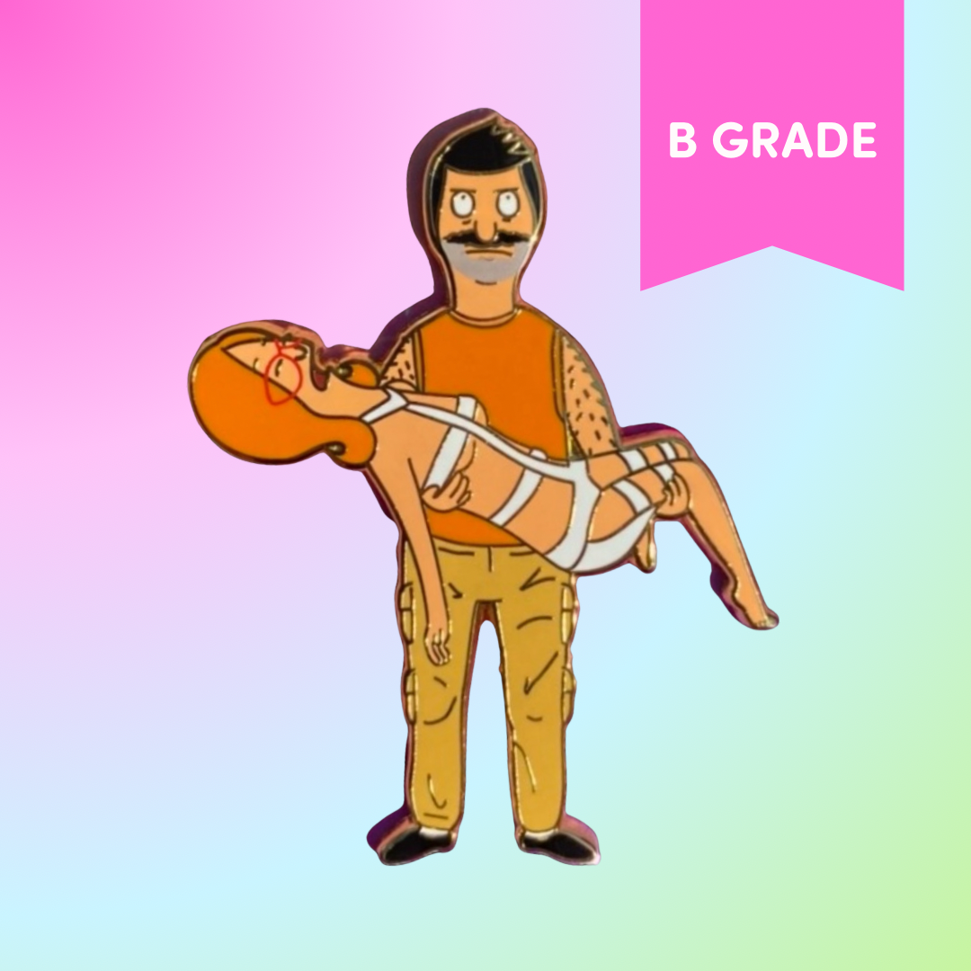 2.5" inch tall hard enamel pin of Bob's Burgers crossed over with the movie The Fifth Element.