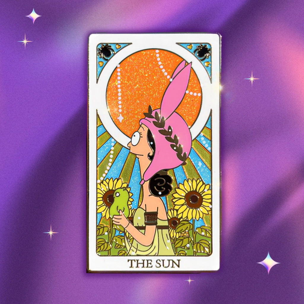 3” tall gold hard enamel pin of Louise as the sun ☀️